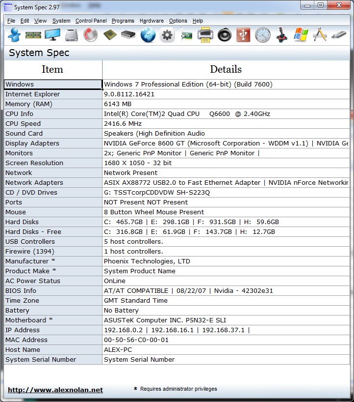 System Specs è un programma gratuito e leggero, che non richiede installazione, che vi permette di visualizzare tutte le informazioni e specifiche tecniche su un pc.