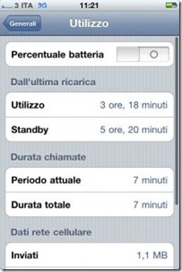 Ora, per abilitare la percentuale di carica della batteria dell’iPhone 4 basta spuntare la voce “percentuale batteria”.