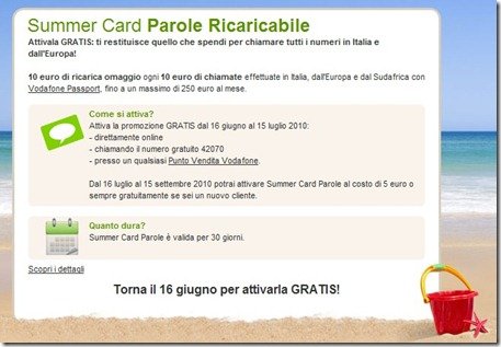 Vodafone: dal 16 Giugno Summer Card Gratis per tutti