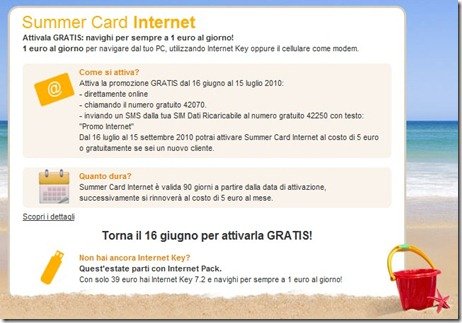 - internet: 1 euro al giorno per navigare dal tuo PC, utilizzando Internet Key oppure il cellulare come modem.