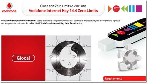 Comunicato StampaVi segnalo questa simpatica iniziativa di Vodafone, che mette in palio fantastiche Internet Key.VODAFONE: ZERO LIMITS ALLA TUA ABILITA’Scopri su www.zerolimits.it il gioco che premia...