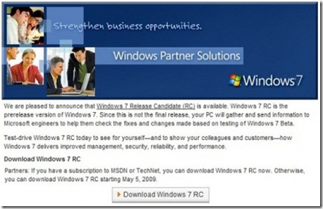 Microsoft ha aggiornato poche ore fa la pagina dedicata ai propri partner, annunciando la disponibilità a breve del download della versione Release Candidate del tanto atteso Windows 7.