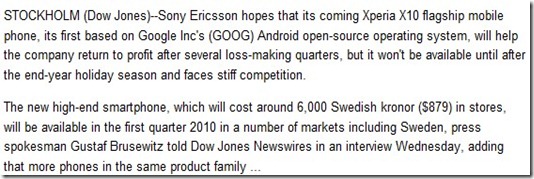 YourLifeUpdated ExclusiveBrutte, anzi bruttissime notizie giungono dalla Svezia per tutti gli utenti interessati al Sony Ericsson Xperia X10. Lo smartphone, annunciato e presentato pochi giorni fa a M...