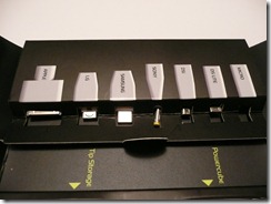 Basta fili, cavi, ingarbugliamenti vari. Potrete portare con voi soltanto la base di ricarica, il cavo apposito e il box contenente i vari adattatori. In pochi secondi, con un solo cavo per la corrente (e quindi con una sola presa da muro) potrete ricaricare fino a 3 dispositivi in modo veloce e semplicissimo. Credetemi, Powermat rivoluzionerà il vostro modo di ricaricare ogni cosa. Dovrete soltanto appoggiare il dispositivo alla base, collegare un cavetto, e via che partirà il ciclo di carica.