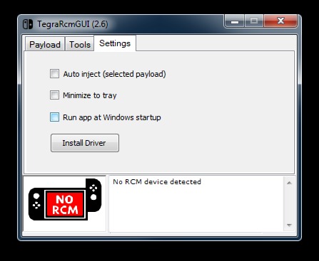 Una volta scaricato, avvia il programma, vai nella finestra Settings e clicca sul bottone Install Driver. Sul PC verranno installati così i driver necessari a comunicare con la Switch in ReCovery Mode (RCM).