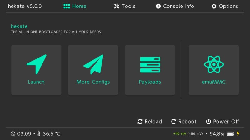 A questo punto possiamo far partire il Custom Firmware Atmosphere come preferiamo: