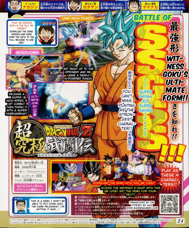 Dopo l'annuncio delle ultime settimane riguardante lo sviluppo di una nuova serie di Dragonball in arrivo in Giappone e che giungerà anche qui da noi, ecco che giungono nuovi dettagli sul gioco Dragonball Z: Extreme Butoden, picchiaduro in due dimensioni in arrivo esclusivamente su console Nintendo 3DS.