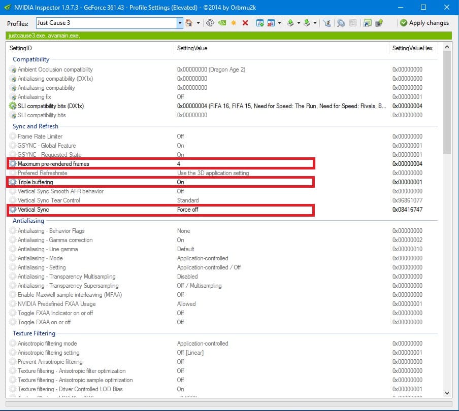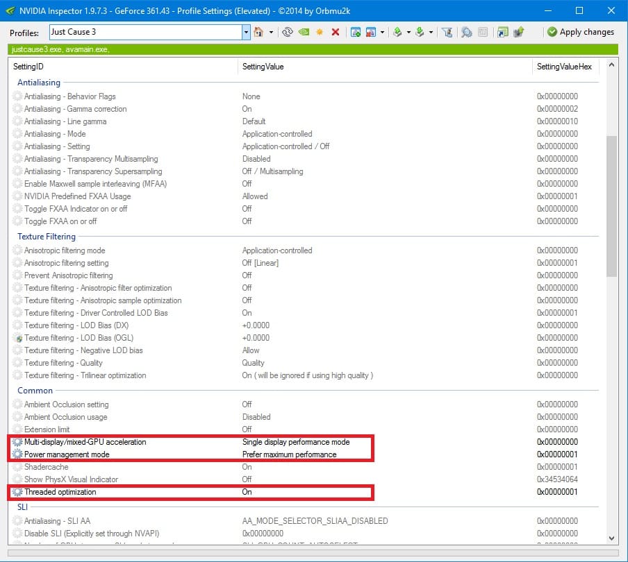 Infine, se avete una GPU NVidia, provate anche queste impostazioni per alleggerire, velocizzare e ottimizzare il gioco Just Cause 3. Aprite il programma Nvidia Inspector (come Amministratori di Windows) e applicate queste impostazioni grafiche: