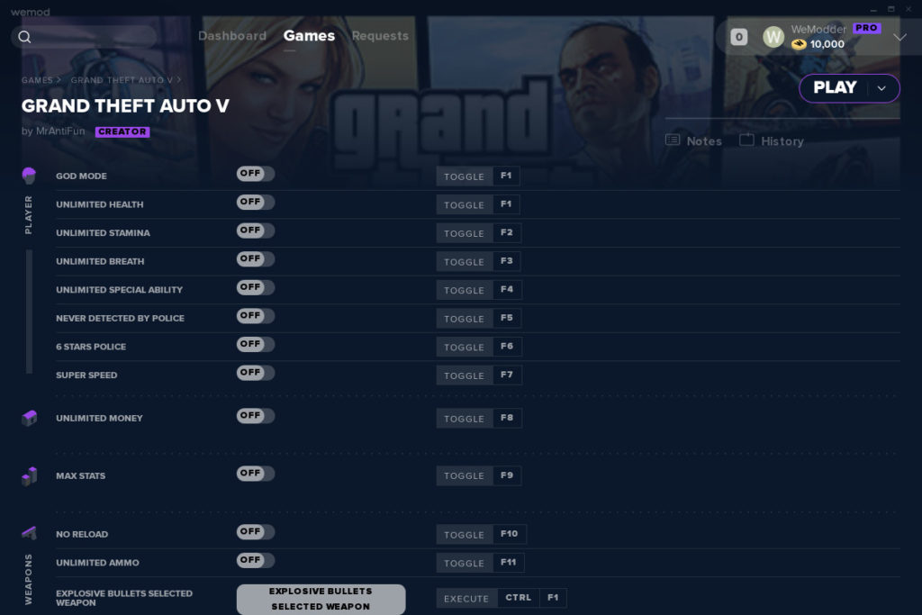 - Nella lista dei giochi supportati, cerca GTA 5 e attiva i trucchi che ti interessano (puoi attivarli tutti, o solo alcuni in base a quello che preferisci)