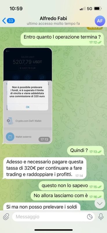 Nuova truffa da parte di: Alfredo Fabi su Telegram