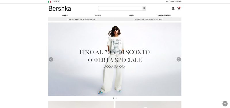 Il portale vende prodotti (apparentemente) di marca Bershka a prezzo super scontato e ribassato.