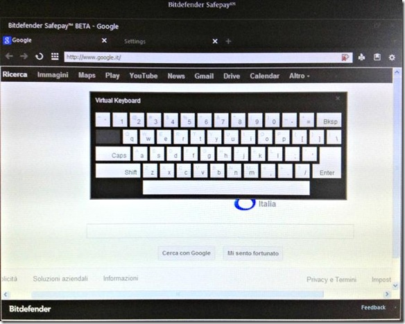 Inoltre segnalo che, mentre si sta utilizzando Bitdefender Safepay, per ragioni di sicurezza non sarà possibile catturare schermate né registrare lo schermo.