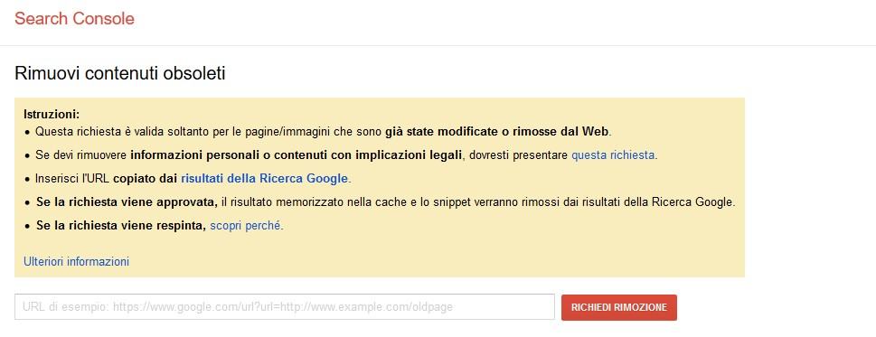 - Cancellare cache Google dai risultati vecchi del nostro sito