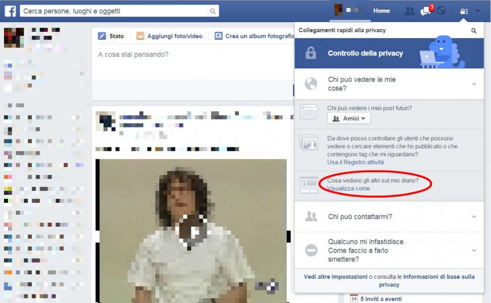 Cliccando sull'icona a forma di lucchetto potremo anche visualizzare la nostra pagina del profilo così come appare ai vari gruppi impostati nella privacy.