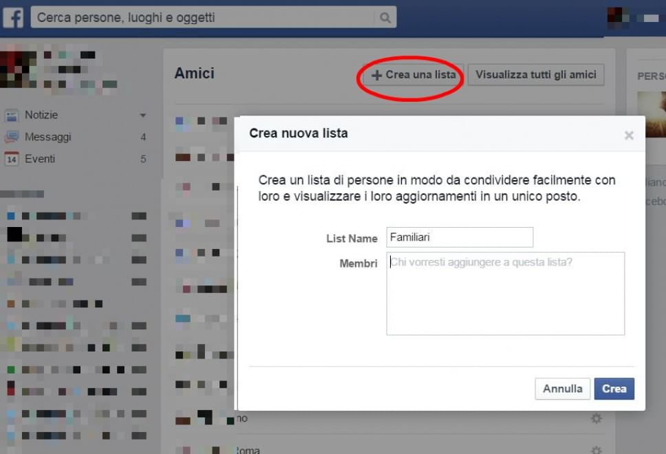 Il nostro consiglio è di creare delle liste personalizzate in modo da indirizzare i post solo a chi desideriamo, dunque non solo individui singoli ma gruppi composti dai nostri Familiari, Amici più stretti, Scuola, Lavoro ed altri.