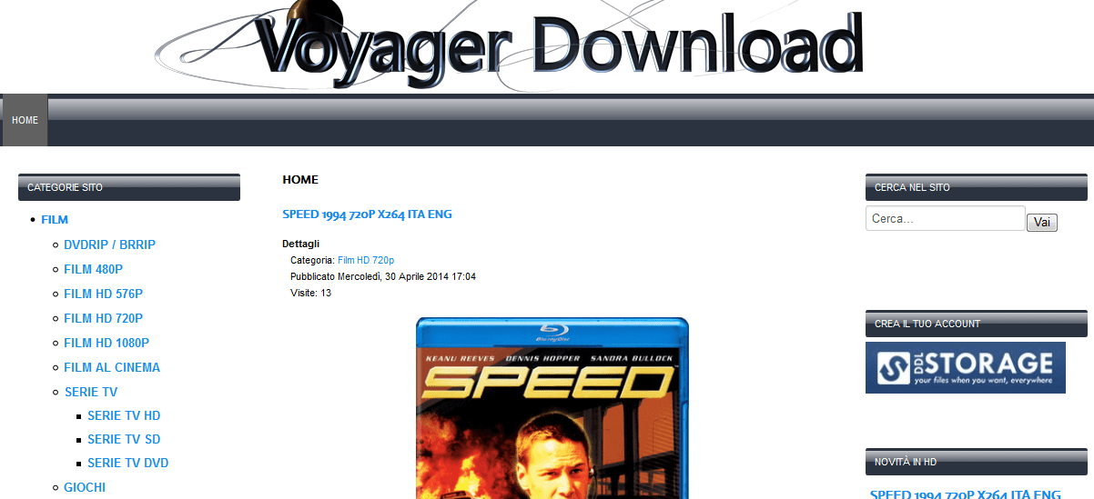 Infine Voyager Download, specializzato sui Film, dove è possibile trovare tantissimi Film in qualità HD ma anche tantissimi software e giochi senza dimenticare una corposa carrellata di Serie TV.