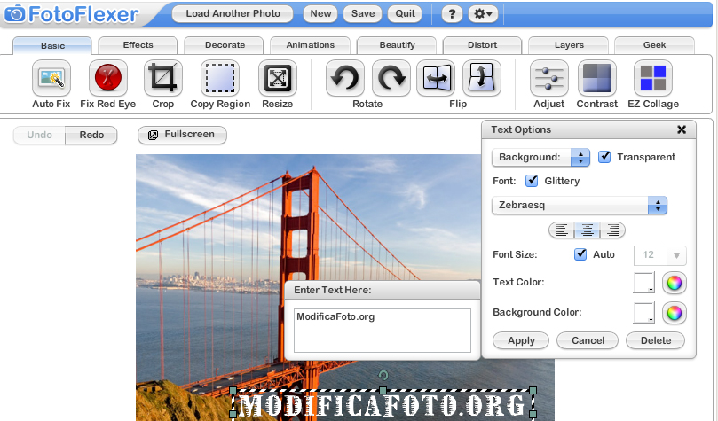Permette di modificare le dimensioni dell'immagine, di ritagliarla, ma offre anche la possibilità di aggiungere effetti, decorazioni, animazioni, distorsioni, livelli ed altro ancora. E' un foto editor molto completo e potente.