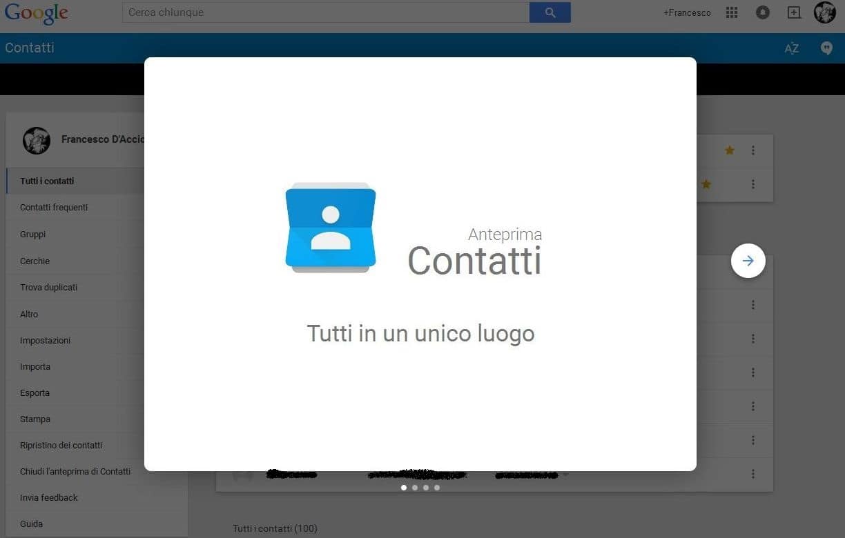 Google ha iniziato il roll out della nuova versione di Google Contatti anche in Italia con tante nuove novità, un restyling grafico totale e nuove funzionalità. Ora organizzare, ordinare, aggiungere, rimuovere e gestire i contatti di Google sarà uno scherzo.