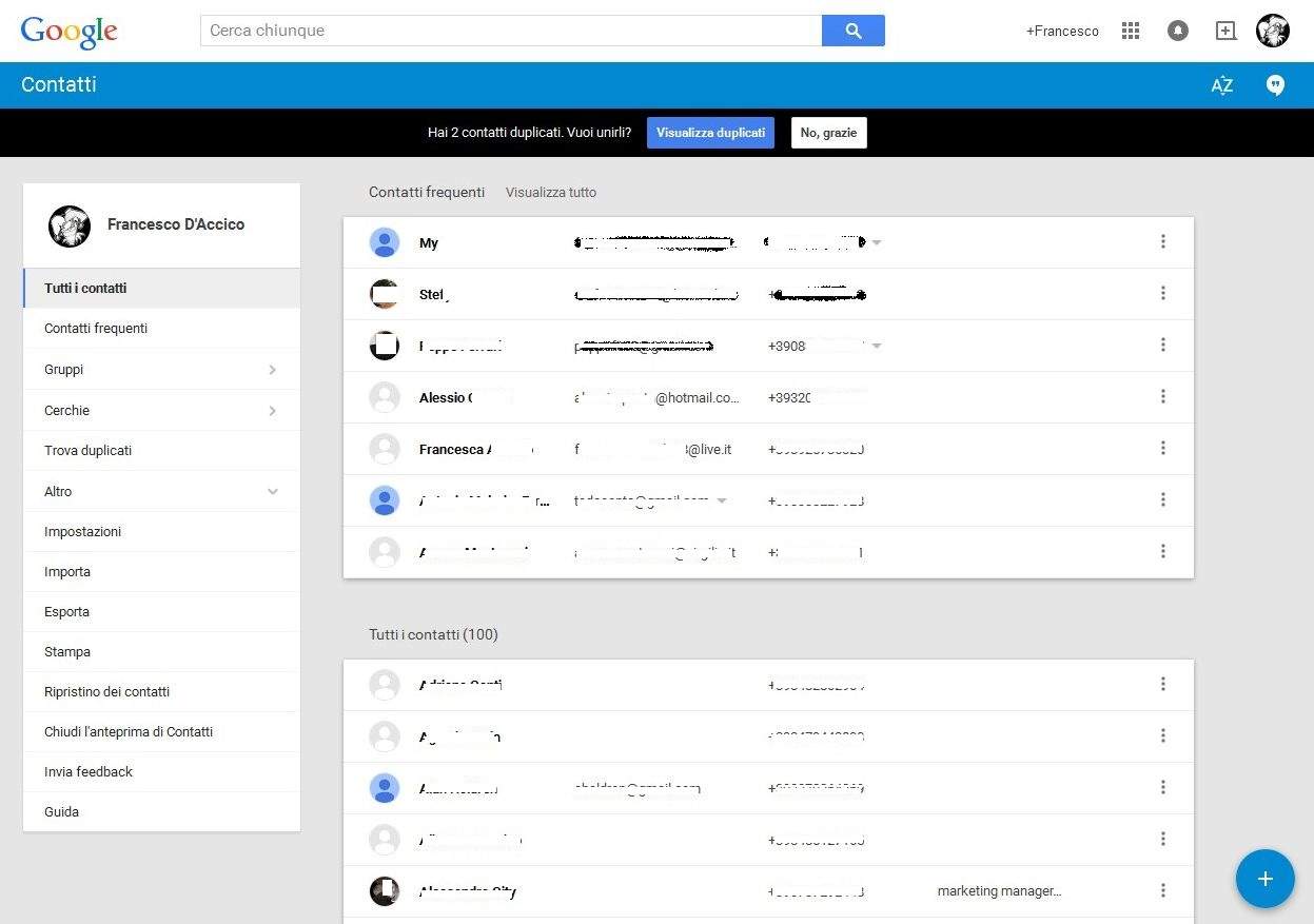 L'interfaccia grafica di Google Contatti ora non solo è più bella ma anche più ordinata e tante sono le possibilità di organizzare i contatti in gruppi, la gestione in schede per ogni contatto è stata ottimizzata in base base alle informazioni che ogni persona fornisce nella propria corrispondenza con i numeri di telefono, email ed altro sono aggiunti in automatico e possono essere modificati manualmente.