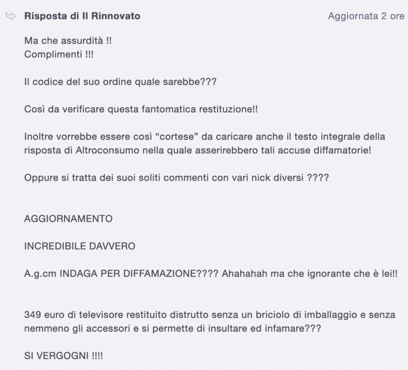 - AltroConsumo: ci sono tante segnalazioni per mancata consegna e nessun rimborso