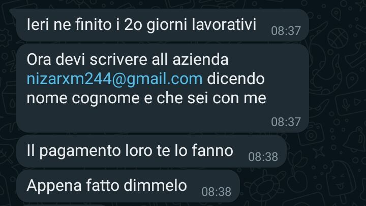 Confermo anch'io ma ho fatto denuncia qlc giorno fa … oggi mi ha scritto dicendomi che mi era arrivata una mail da nizarxm dove mi si chiedevano i dati su dove effettuare il pagamento dei 600 euro…. sicuramente scritta di suo pugno e solo per me vista la denuncia in corso ..