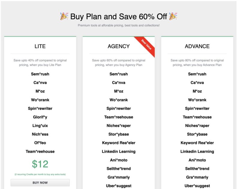 Pagando pochissimo si ha la possibilità di usare TUTTI i principali siti web relativi alla SEO, al montaggio di video online, alla creazione di ads creative e tanto, tanto altro ancora.