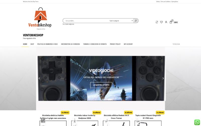 Questo è attualmente il link alla home del sito che stiamo analizzando: https://www.ventobikeshop.it/