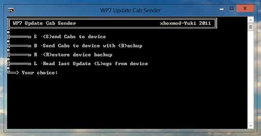 TUTTI - Eseguite il file \Cab Sender Tango\WP7 Update Cab Sender.bat.