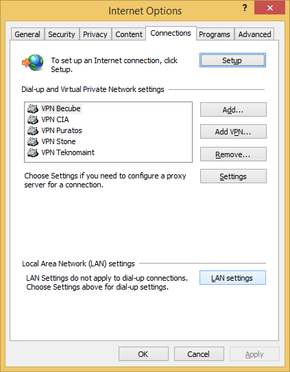 6) Nella finestra che si apre clicchiamo sulla scheda Connessioni e poi su Impostazioni LAN in basso.