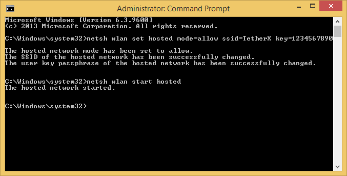 Questi comandi servono rispettivamente per creare e attivare una rete wireless. Potete quindi decidere il nome di questa rete (es: TetherX) e la password lunga almeno 8 caratteri (es: 1234567890):