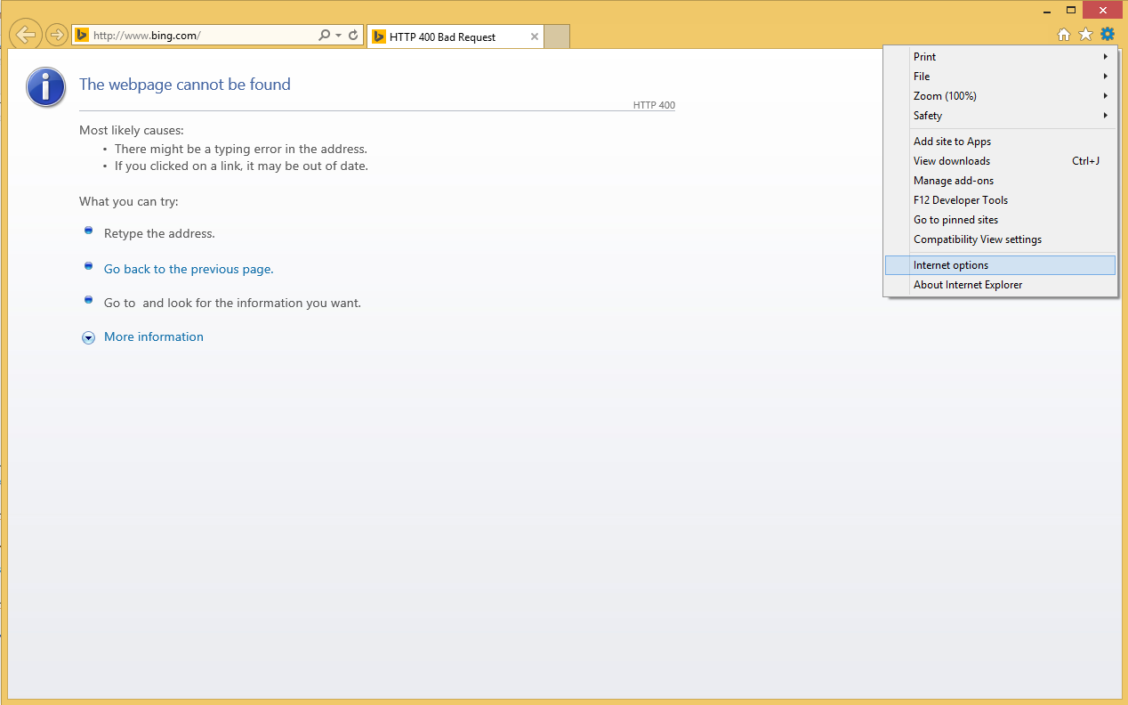 5) Torniamo sul PC di partenza e apriamo Internet Explorer. Clicchiamo sull’ingranaggio in alto a destra e poi su Opzioni Internet.
