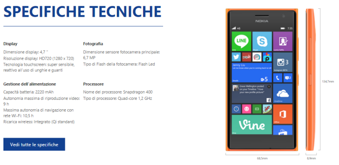 Nokia Lumia 730: caratteristiche, scheda tecnica, informazioni hardware