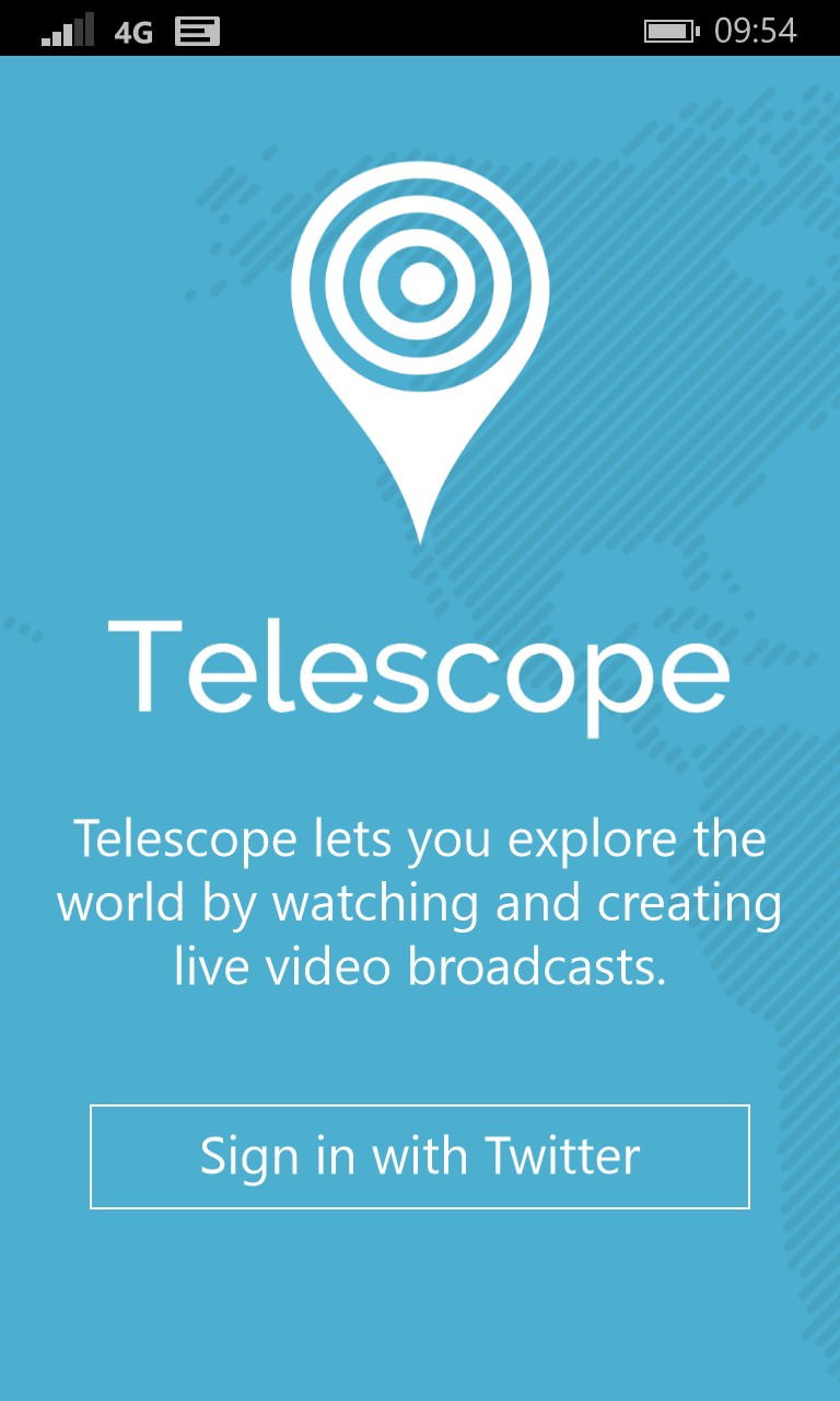 Se per Android il suo rilascio è quasi imminente temiamo che per Windows Phone i tempi di attesa siano biblici, allora abbiamo voluto, nonostante tutto, provare questo servizio anche con questo sistema operativo e con nostra sorpresa abbiamo scoperto Telescope che si propone come "ponte" tra Twitter e Periscope.