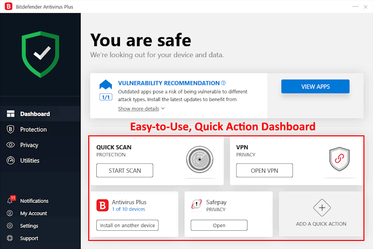 Offre poi tante altre funzioni aggiuntive come strumenti di ottimizzazione del PC, malware scanner e protezione phishing. Insomma, è un pacchetto di protezione completo per il PC.