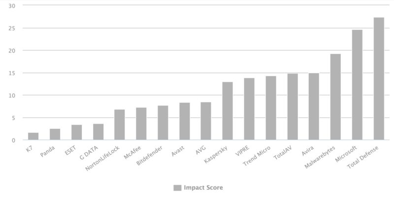 È opportuno ricordare che questi sono solo test sull’impatto generale sulle prestazioni del computer in cui gli antivirus vengono installati e non danno alcuna indicazione sulla loro efficacia come suite di sicurezza.