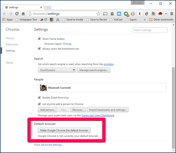 Step 2: Scorrete le impostazioni finchè non trovate la voce Imposta Chrome come browser predefinito.