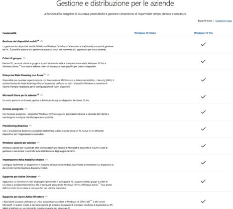 Da segnalare anche che se utilizzi il tuo PC per scopi aziendali, Windows 10 Pro ti aiuta a ridurre i costi di amministrazione della tua azienda, a controllare gli aggiornamenti frequenti, a condividere le informazioni con colleghi o clienti in modo più efficiente o a caricare bulk i tuoi contenuti (utile per le aziende più grandi con una grande quantità di dati).