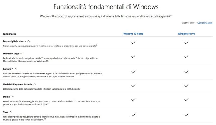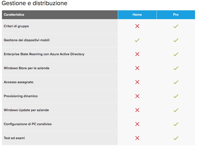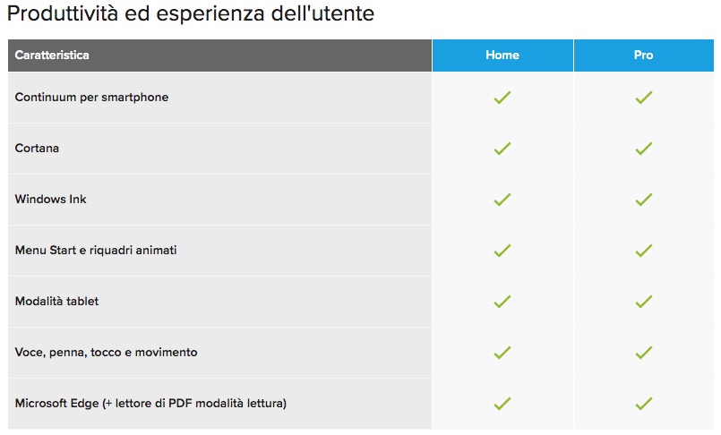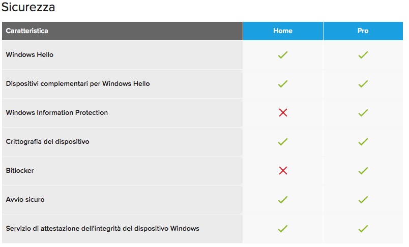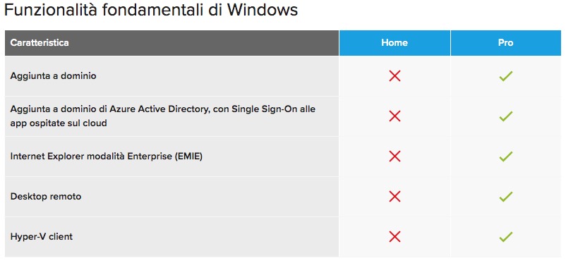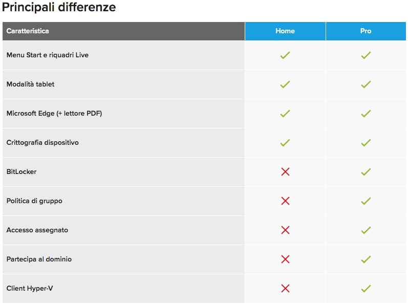 Prima di chiudere con l'articolo, ti lascio un'ulteriore tabella di confronto tra le due versioni di Windows, in modo da chiarirti altri eventuali dubbi.