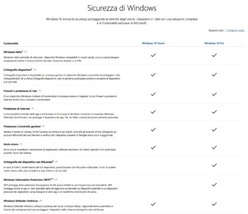 Nella versione Home manca anche la funzionalità estesa di protezione delle informazioni di Windows, utilizzata per impostare il livello di sicurezza dei dati di Windows.