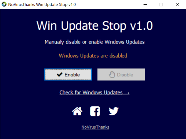 - una volta avviato, clicca sul pulsante arancione grande che dice Stop Windows Updates