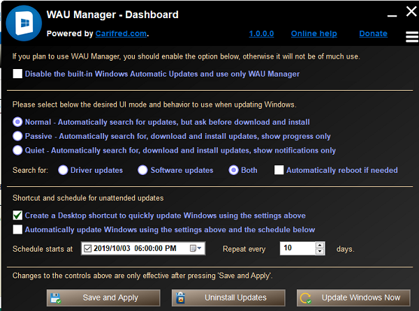Nello specifico, giusto per informazione, StopUpdates10 agisce in 3 modalità:
