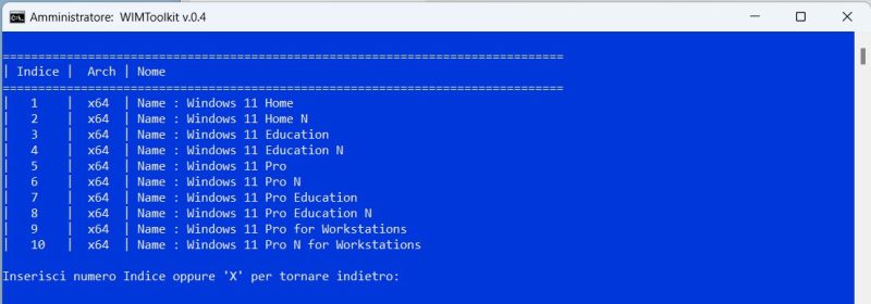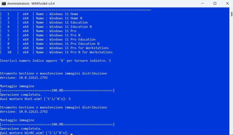 Quando ti chiede se vuoi montare WinRE.wim, premi N