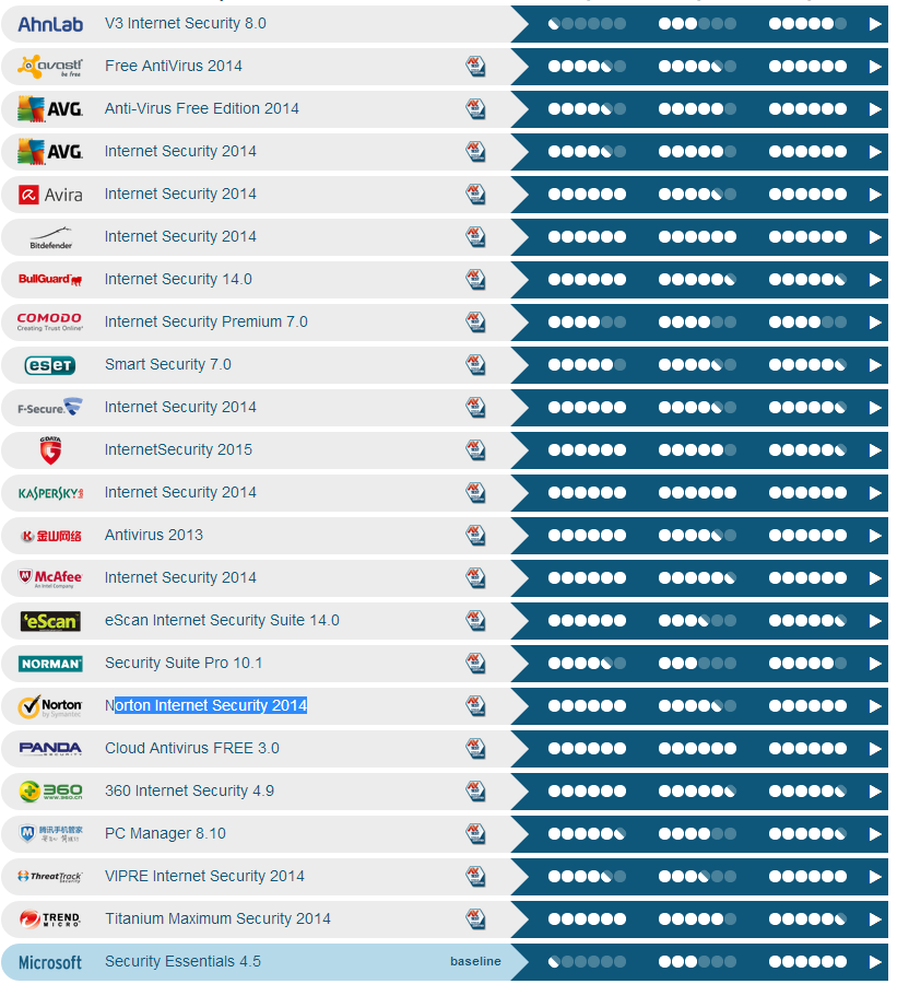 Ecco un'immagine del report completo sui migliori antivirus per Windows XP aggiornato a Luglio 2014.