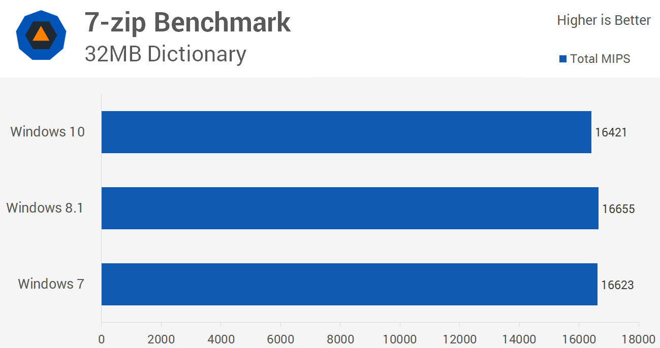 In particolare, il sito Techspot ha realizzato una completa analisi di benchmark di Windows 10 per confrontare le prestazioni di Windows 10 con Windows 7 e Windows 8.1; grazie a questi test, infatti, le prestazioni dei diversi sistemi operativi vengono confrontate sullo stesso PC (Intel Core i5-4670k, 8 GB RAM DDR3-2400, SSD Crucial MX220 1 TB) e ci permettono di capire se effettivamente Windows 10 risulta più leggero, pesante, lento o veloce degli altri sistemi operativi.