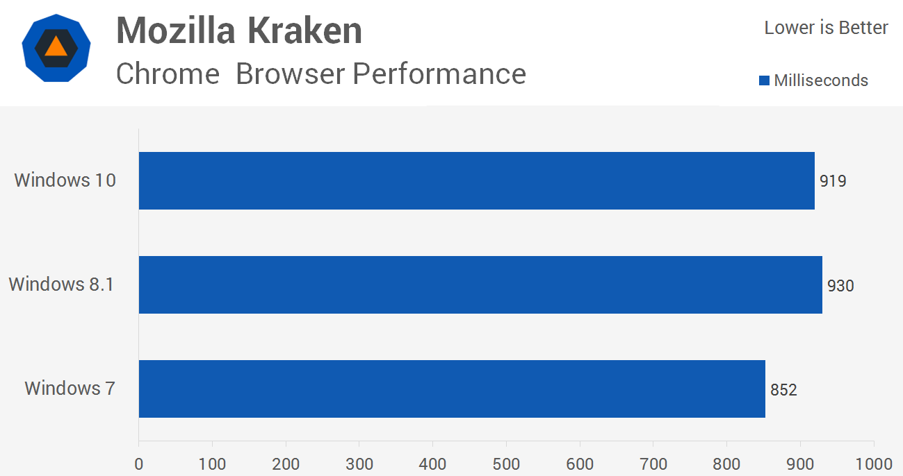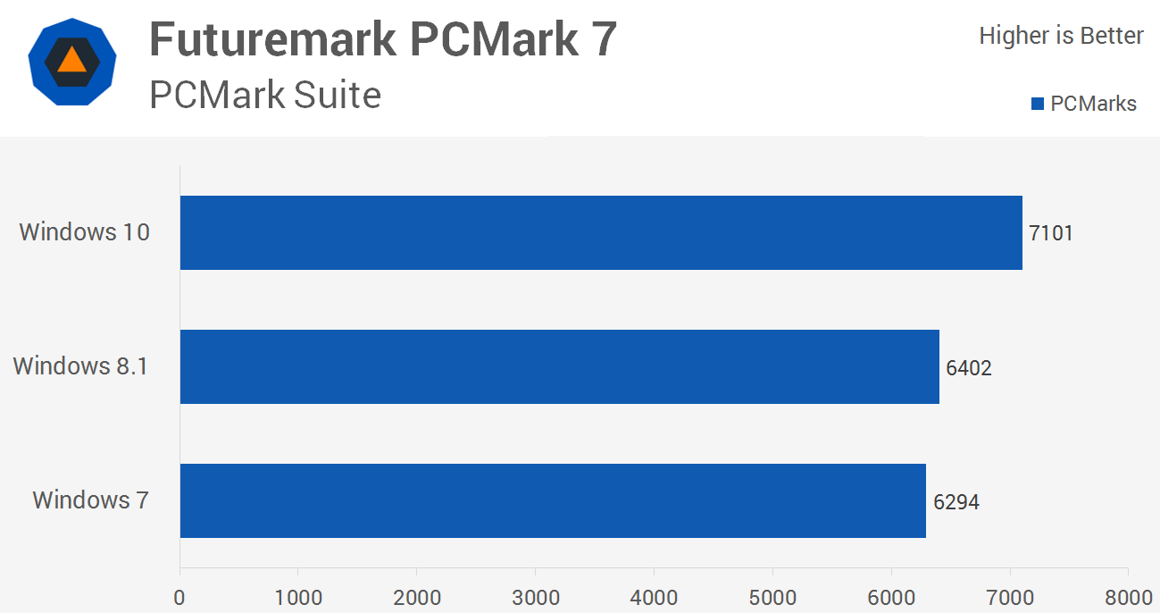Se volete maggiori dettagli sul test che mette a confronto le prestazioni di Windows 8, Windows 7 e Windows 10, potete andare qui: Windows 10 vs. Windows 8.1 vs. Windows 7 Performance.