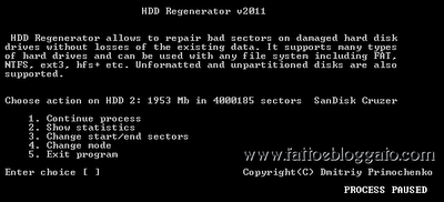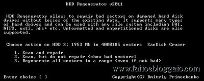 Non l'ho specificato prima, ma con HDD Regenerator è possibile effettuare riparazioni dei settori danneggiati su determinate parti dell'hard disk. Questo ci viene utile soprattutto con quegli hard disk di grossa capienza, per risparmiare tempo.