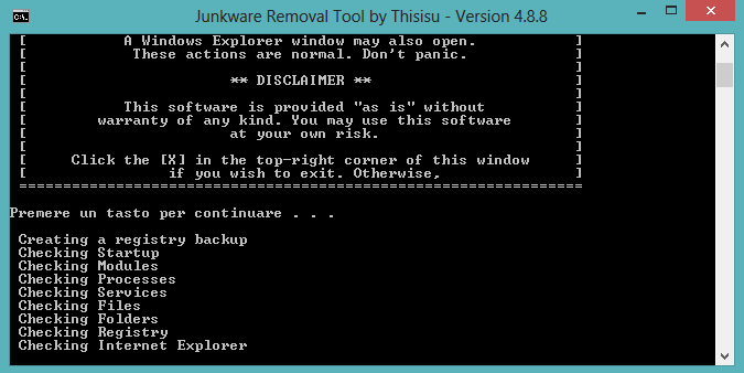 La procedura da seguire per utilizzare Junkware è semplicissima: vi basta infatti scaricare il programma (gratuito), avviare l’eseguibile e confermare di voler continuare.