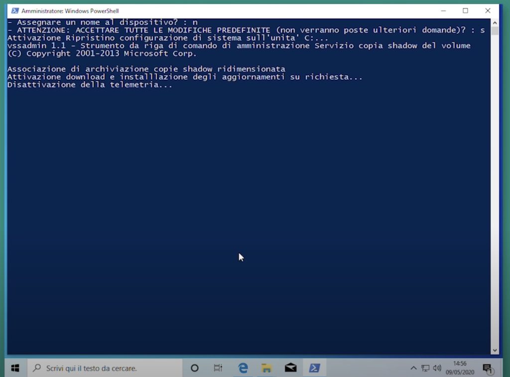 - Prima di eseguire lo script è bene chiudere tutte le applicazioni in esecuzione e salvare eventuali documenti aperti perché come ultimo passaggio viene effettuato il reboot automatico della macchina