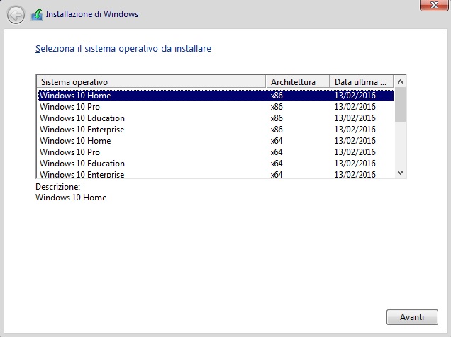 Siccome mi capita di fare assistenza ed ovviamente mi porto dietro tutto il mio armamentario come le diverse chiavetta USB con i sistemi operativi pronti per essere installati ma siccome sono 4 o 5 le chiavette con i diversi sistemi operativi che installo più spesso ecco che per caso ho trovato un'immagine ISO che include Windows 10 in tutte le sue versioni tutto in un'immagine ISO che una volta avvita permette di installare il sistema operativo desiderato in tutte le sue varianti a 32 e 64 bit ma anche nelle varie versioni disponibili, Home, Pro, Educational, Enterprise e tutte le altre.
