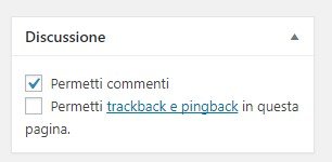 Da li selezionare la voce commenti o discussione nelle ultime versioni, spuntandola (una V sul quadratino), e poi in basso a sinistra nella colonna, trovate la tab attiva con scritto Permetti commenti e Permetti trackback e pingback in questa pagina.